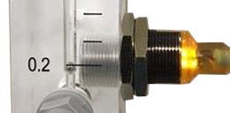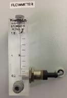 During measurement and calibration, air flow should be approximately 1 liter per minute. This is indicated by the position of the ball in the flow meter, which is located at the front of the measurement cabinet or CO2 scrubber. The flow sensor is located at the bottom of the flow meter. If, during a calibration or measurement, the flow sensor detects that the air flow is too low for an accurate measurement, an alarm is triggered. It will then also light up.